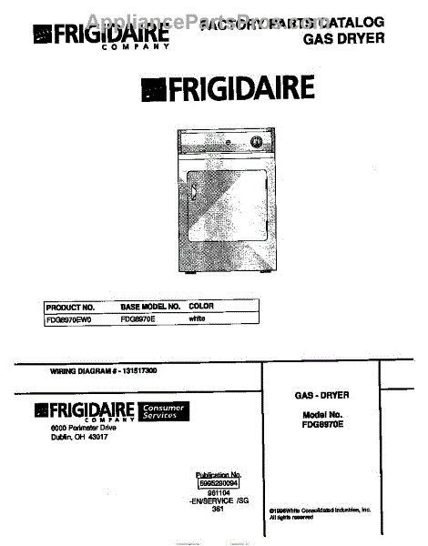 Parts for Frigidaire FDG8970EW0: 01 - Cover Parts