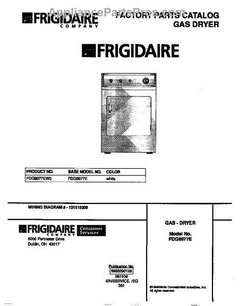 Parts for Frigidaire FDG8977EW0: 01 - Cover Parts