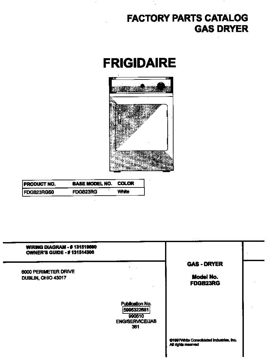 Parts for Frigidaire FDGB23RGS0: 01 - Cover Parts