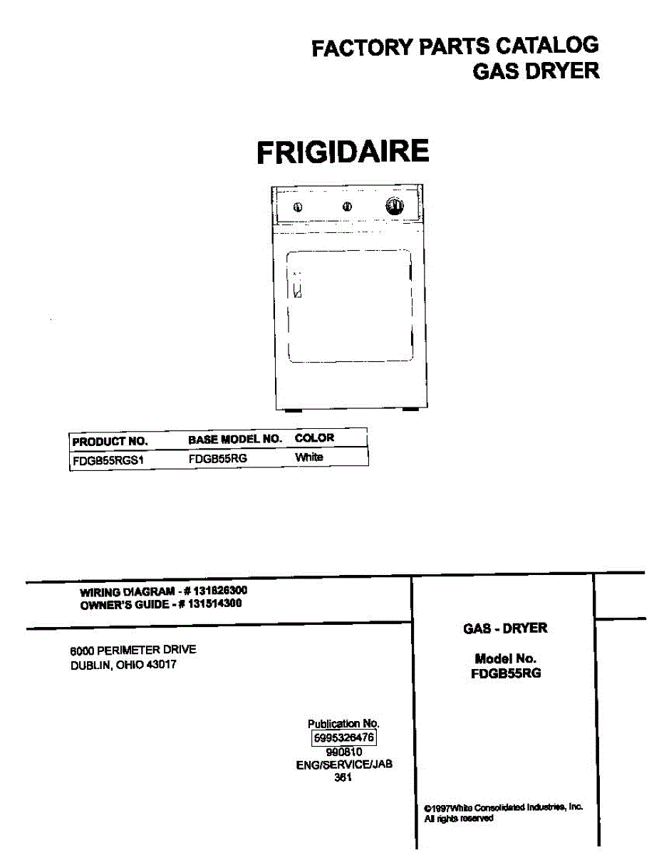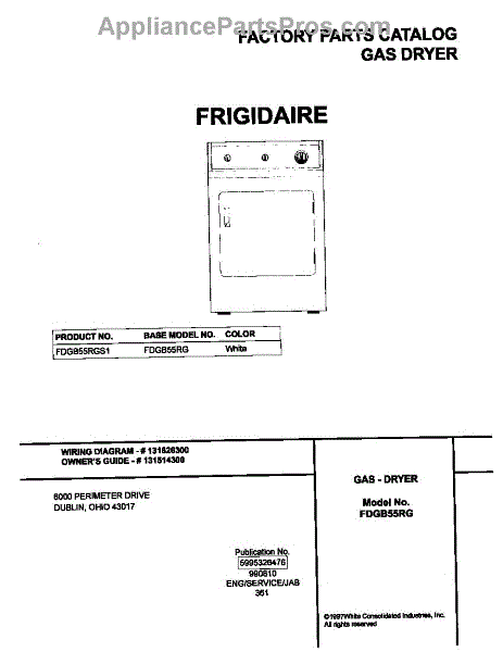 Parts for Frigidaire FDGB55RGS1: 01 - Cover Parts
