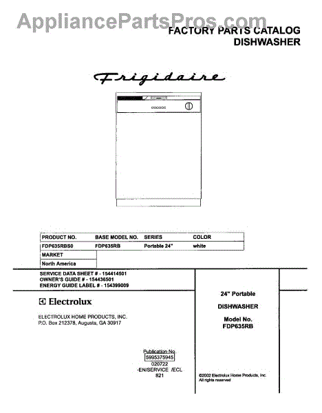 Parts for Frigidaire FDP635RBS0: 01 - Cover Parts