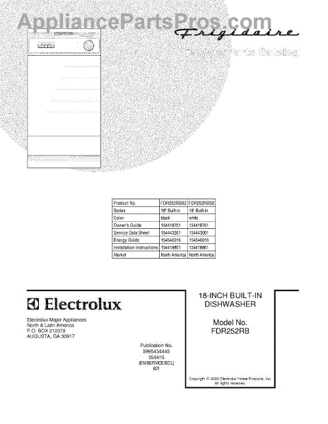 Parts for Frigidaire FDR252RBS2: 01 - Cover Parts