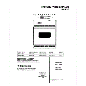 Parts for Frigidaire FEB24S2ASB: 01 - Cover Parts