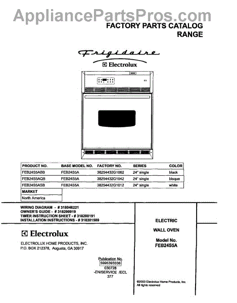 Parts for Frigidaire FEB24S5ABB: 01 - Cover Parts