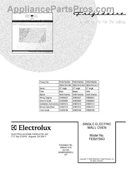 Parts for Frigidaire FEB27S6DSA: 01 - Cover Parts