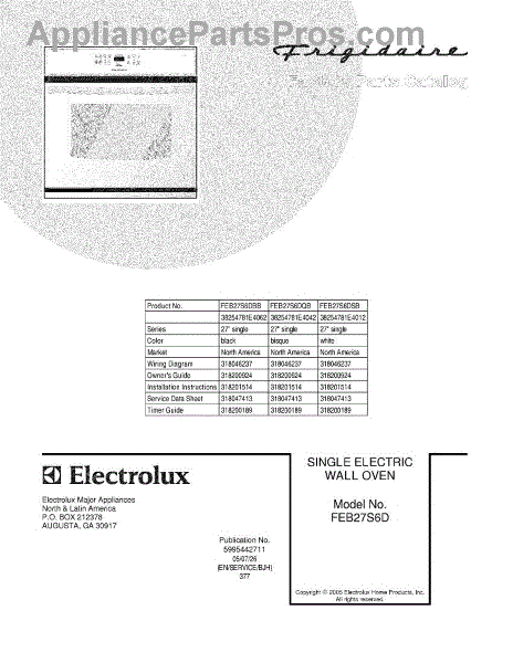 Parts for Frigidaire FEB27S6DSB: 01 - Cover Parts