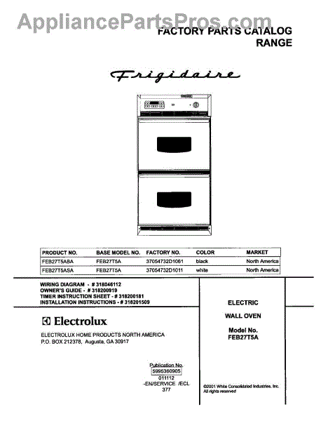 Parts for Frigidaire FEB27T5ABA: 01 - Cover Parts