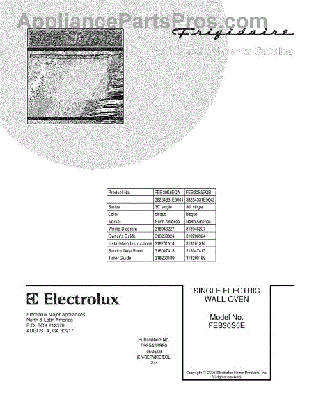 Parts for Frigidaire FEB30S5EQA: 01 - Cover Parts