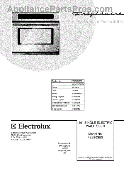 Parts for Frigidaire FEB30S5GCD: 01 - Cover Parts