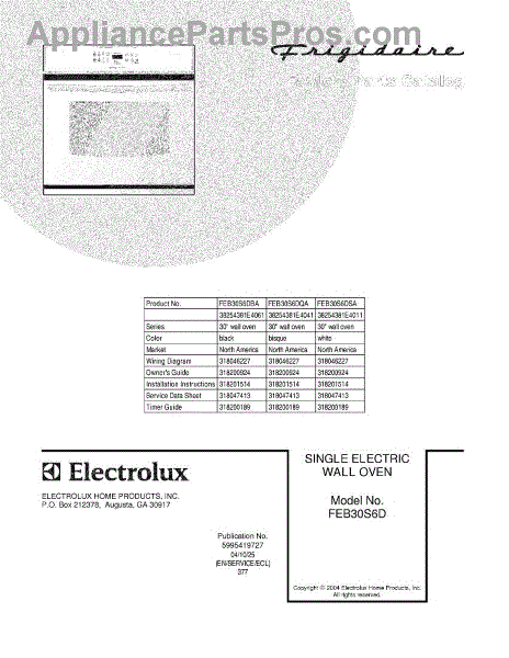 Parts for Frigidaire FEB30S6DBA: 01 - Cover Parts