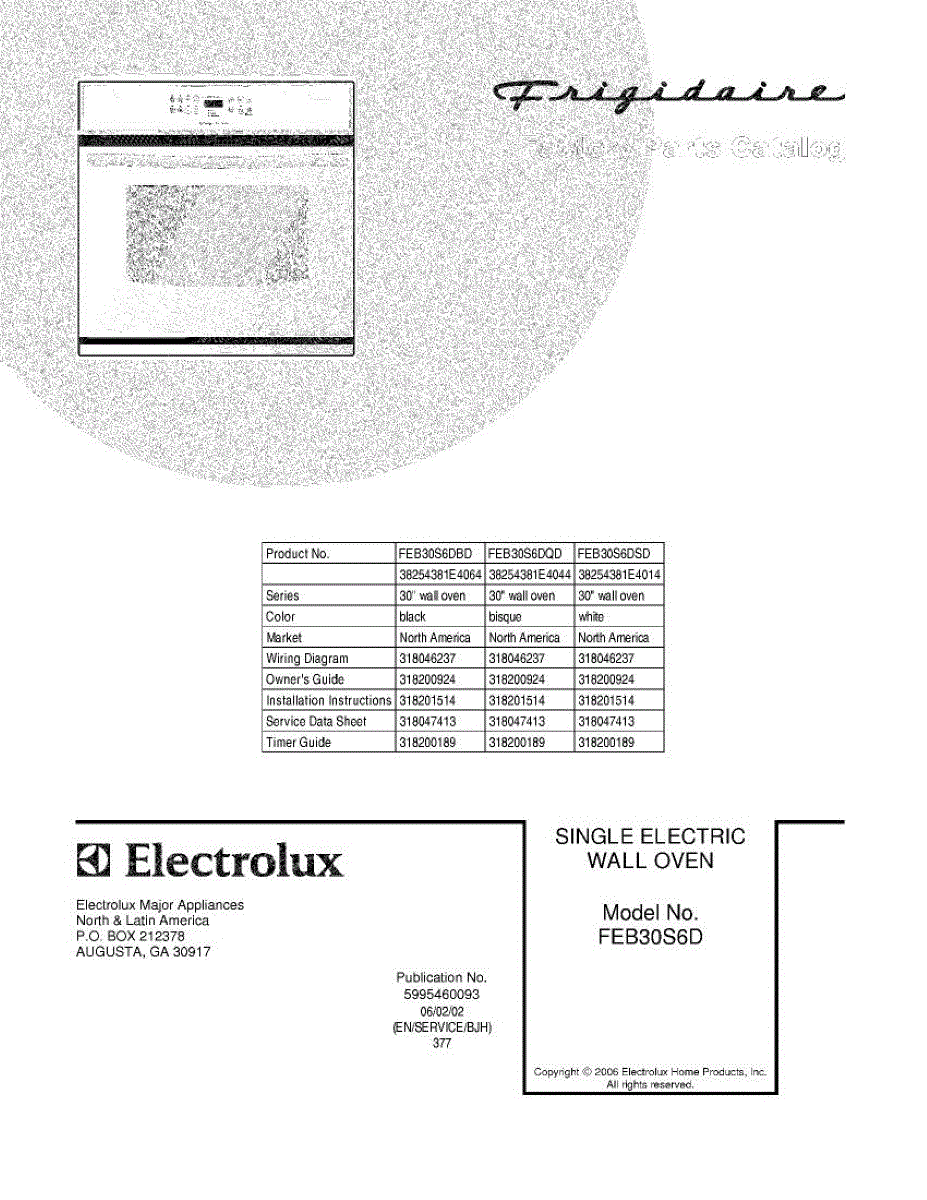Parts for Frigidaire FEB30S6DQD: 01 - Cover Parts