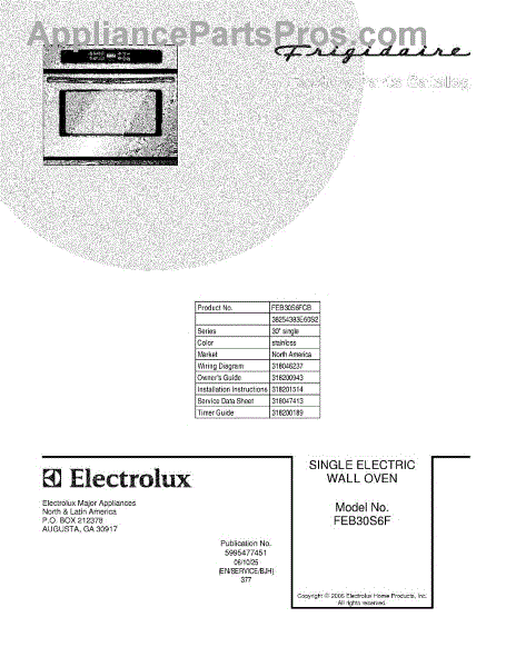 Parts for Frigidaire FEB30S6FCB: 01 - Cover Parts