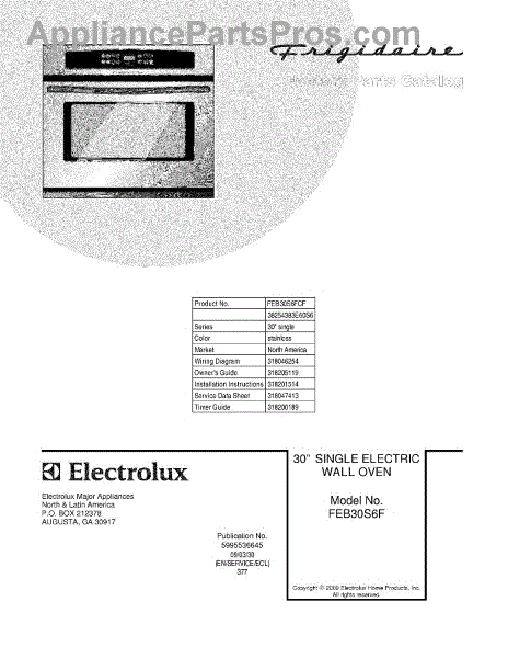 Parts for Frigidaire FEB30S6FCF: 01 - Cover Parts