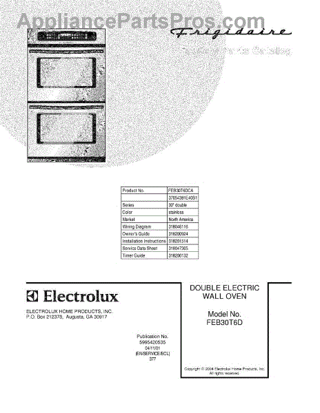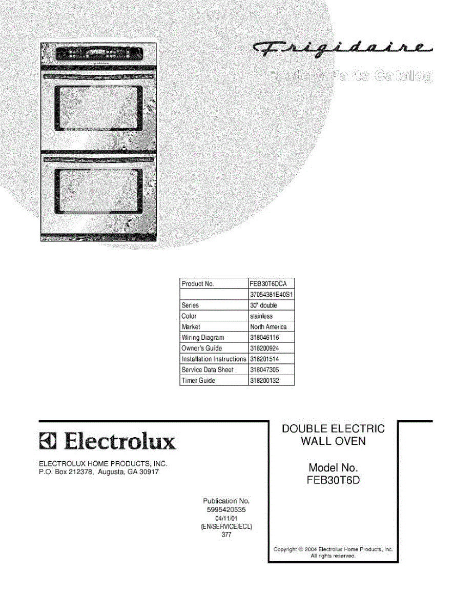 Parts for Frigidaire FEB30T6DCA: 01 - Cover Parts