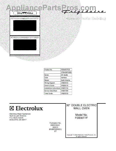 Parts for Frigidaire FEB30T7FCE: 01 - Cover Parts