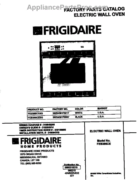 Parts for Frigidaire FEB374CHTA: 01 - Cover Parts