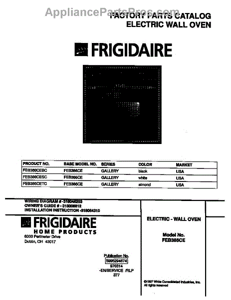 Parts for Frigidaire FEB386CETC: 01 - Cover Parts