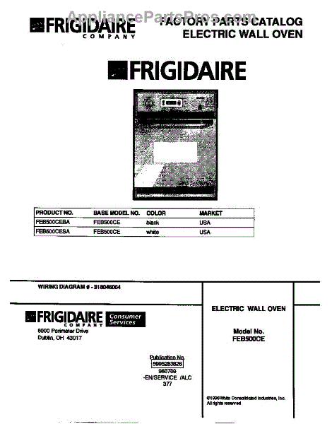 Parts for Frigidaire FEB500CESA: 01 - Cover Parts