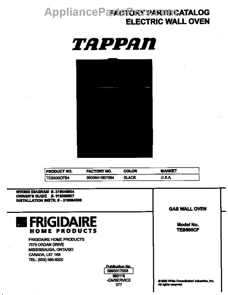 Parts for Frigidaire FEB500CFB4: 01 - Cover Parts