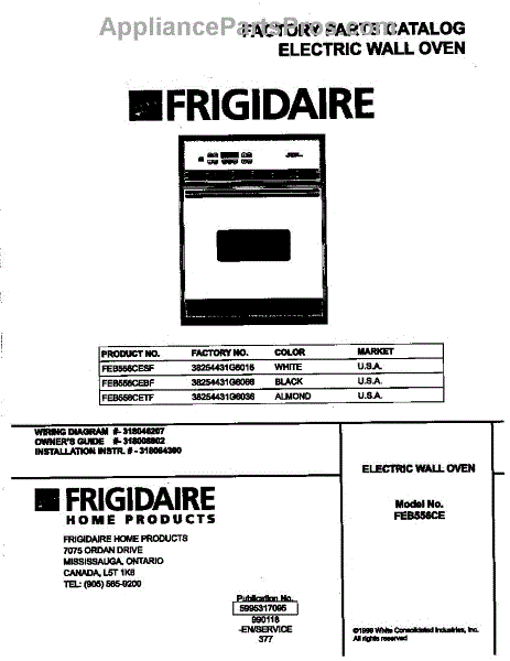 Parts for Frigidaire FEB556CETF: 01 - Cover Parts