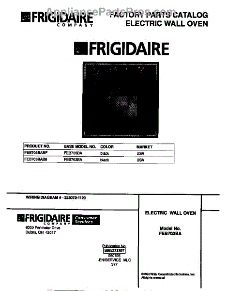 Parts for Frigidaire FEB703BABF: 01 - Cover Parts