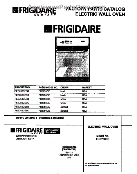 Parts for Frigidaire FEB756CETC: 01 - Cover Parts