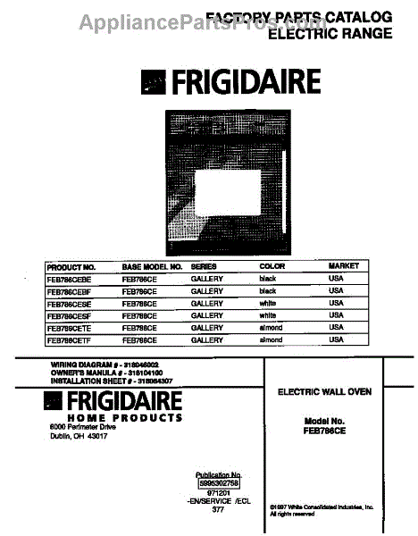 Parts for Frigidaire FEB786CESF: 01 - Cover Parts