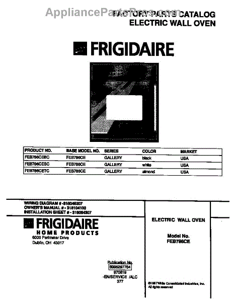 Parts for Frigidaire FEB786CETC: 01 - Cover Parts