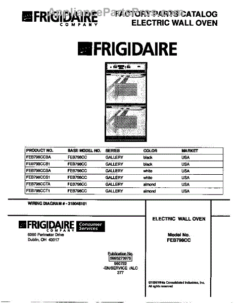 Parts for Frigidaire FEB798CCS1: 01 - Cover Parts