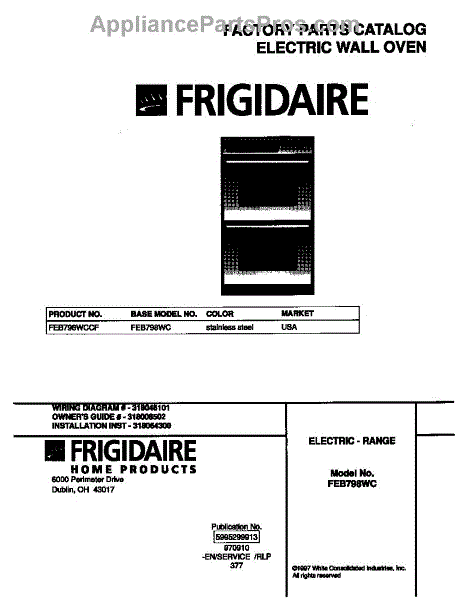 Parts for Frigidaire FEB798WCCF: 01 - Cover Parts