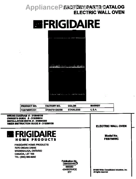 Parts for Frigidaire FEB798WCCH: 01 - Cover Parts