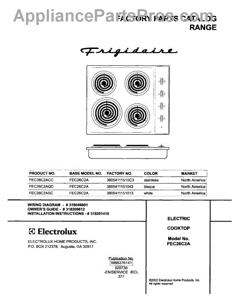 Parts for Frigidaire FEC26C2ACC: 01 - Cover Parts