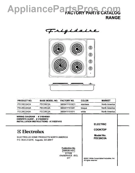 Parts for Frigidaire FEC26C2AQA: 01 - Cover Parts
