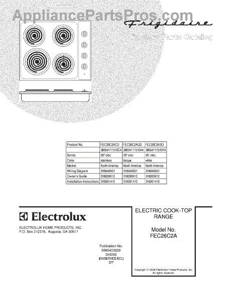 Parts for Frigidaire FEC26C2AQD: 01 - Cover Parts
