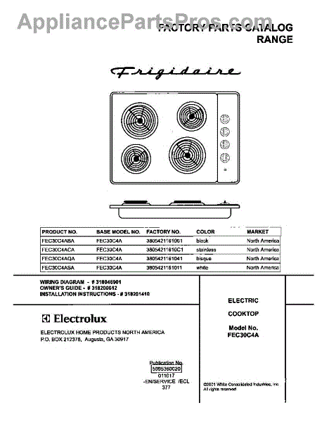 Parts for Frigidaire FEC30C4ACA: 01 - Cover Parts