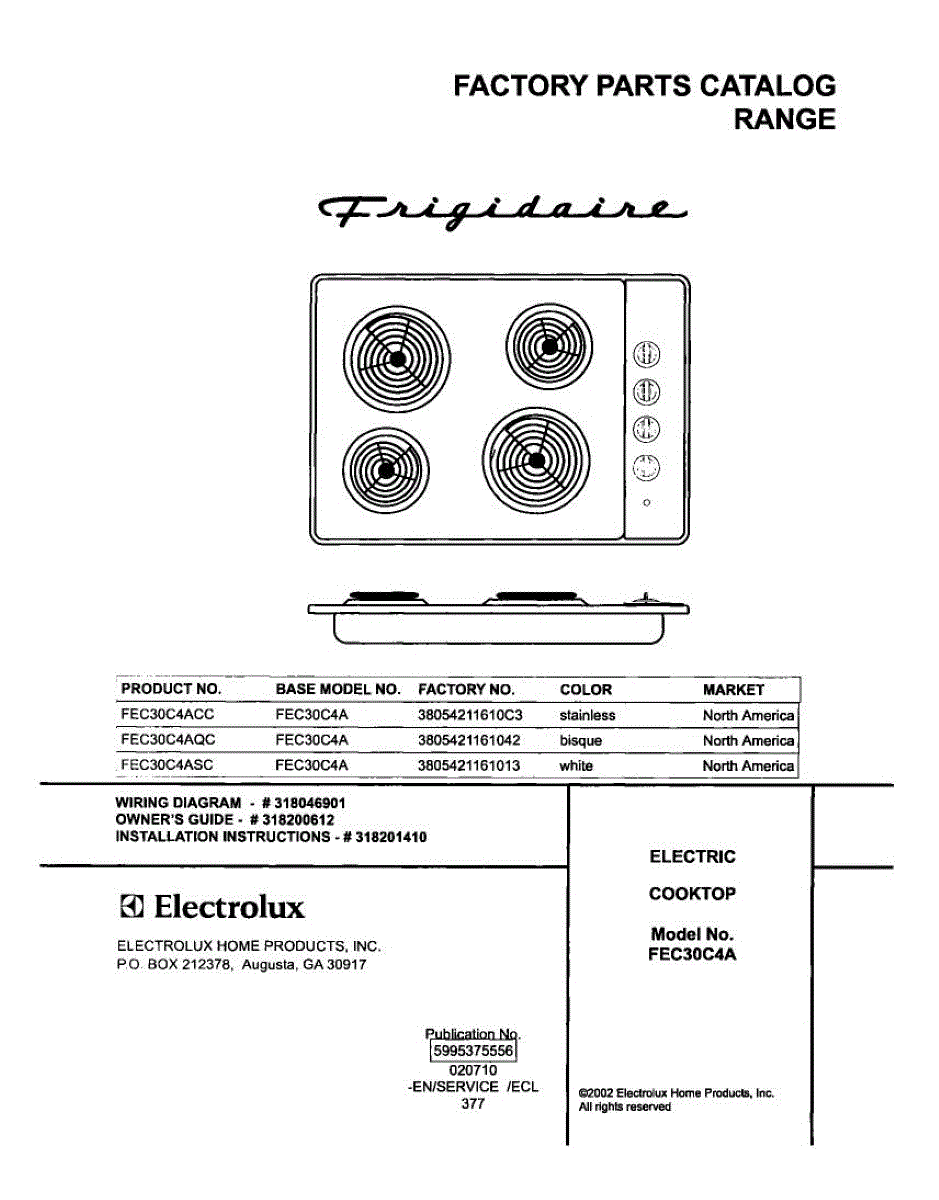 Parts for Frigidaire FEC30C4AQC: 01 - Cover Parts