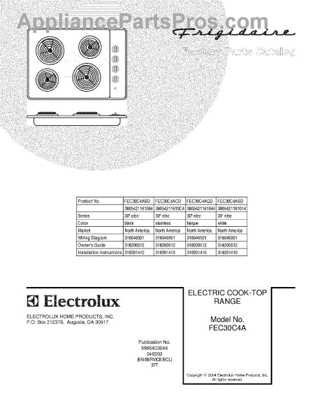 Parts for Frigidaire FEC30C4AQD: 01 - Cover Parts