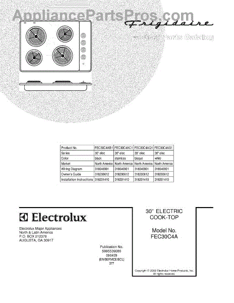Parts for Frigidaire FEC30C4AS1: 01 - Cover Parts