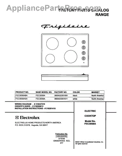 Parts for Frigidaire FEC30S6ABA: 01 - Cover Parts