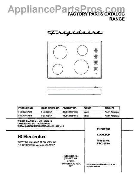 Frigidaire Cooktop Parts