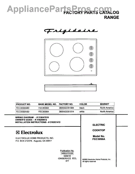 Parts for Frigidaire FEC30S6ABD: 01 - Cover Parts