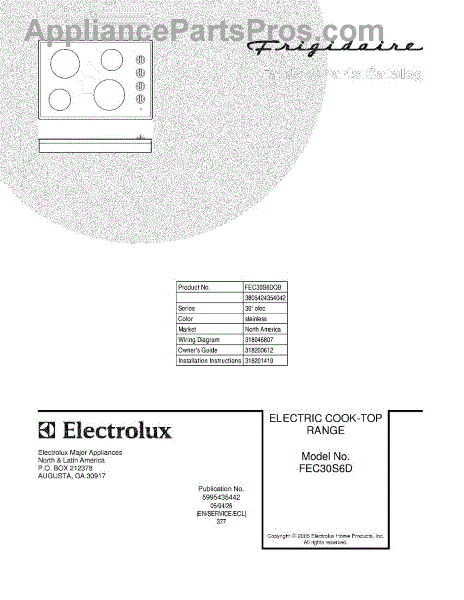 Parts for Frigidaire FEC30S6DQB: 01 - Cover Parts