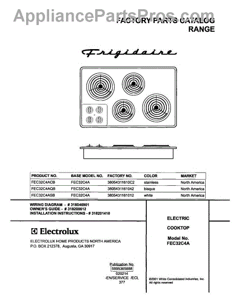 Parts for Frigidaire FEC32C4AQB: 01 - Cover Parts