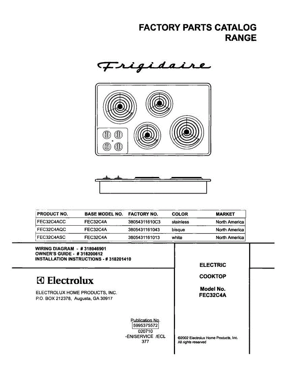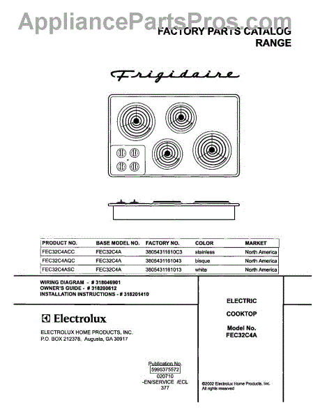 Parts for Frigidaire FEC32C4AQC: 01 - Cover Parts