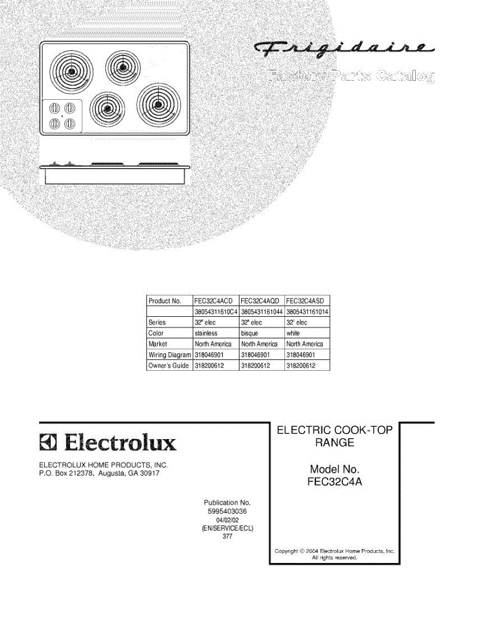 Parts for Frigidaire FEC32C4ASD: 01 - Cover Parts