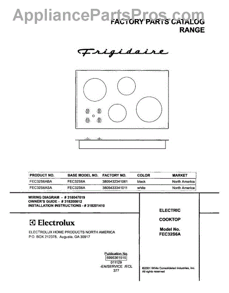 Parts for Frigidaire FEC32S6ABA: 01 - Cover Parts