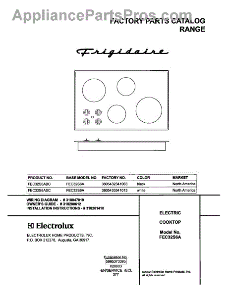 Parts for Frigidaire FEC32S6ABC: 01 - Cover Parts