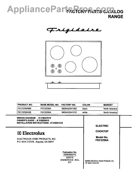 Parts for Frigidaire FEC32S6ASB: 01 - Cover Parts
