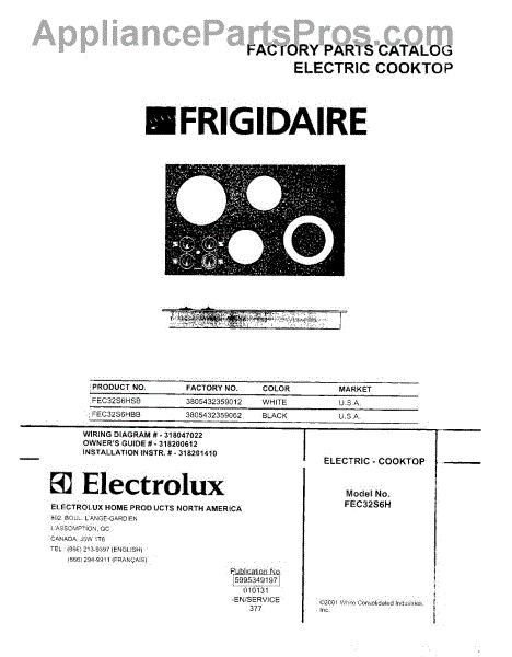 Elcooktop Frigidaire Fec32s6hs&B Ver.B