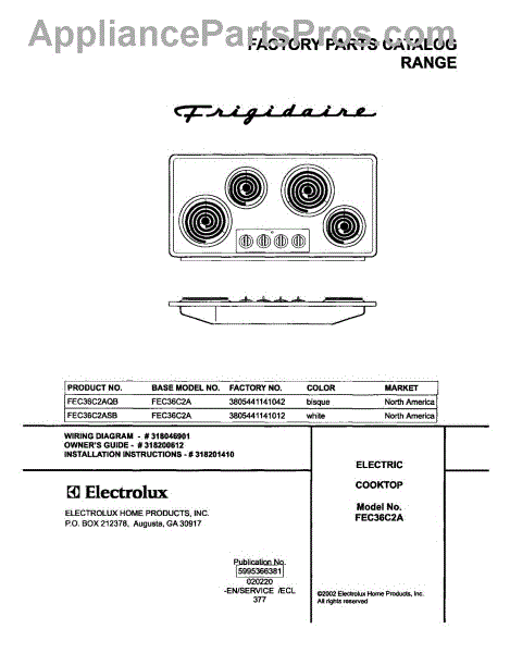 Parts for Frigidaire FEC36C2AQB: 01 - Cover Parts